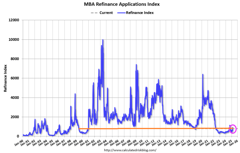 Mortgage applications decreased 6.2 percent from one week earlier, according to data from the Mortgage Bankers Association’s (MBA) Weekly Mortgage Applications Survey for the week ending March 14, 2025.