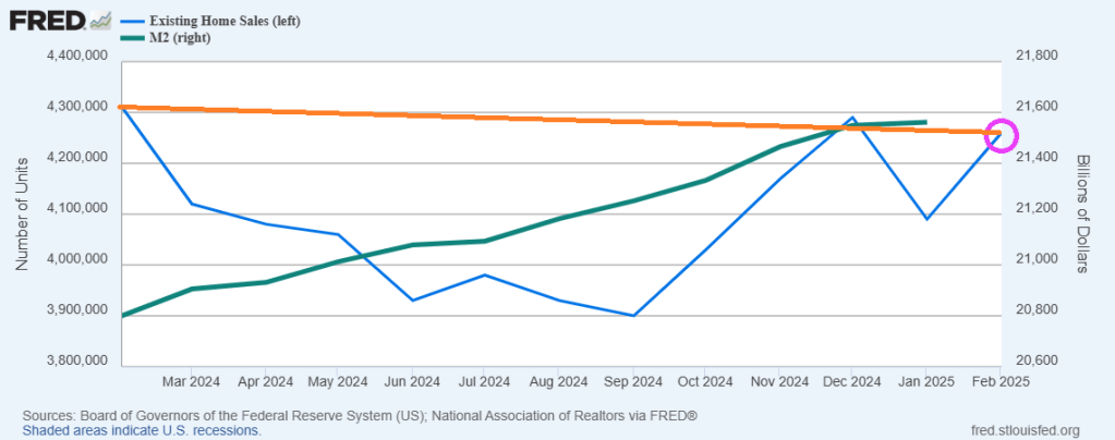 But Fed M2 Money printing isn’t helping existing home sales of a YoY basis!