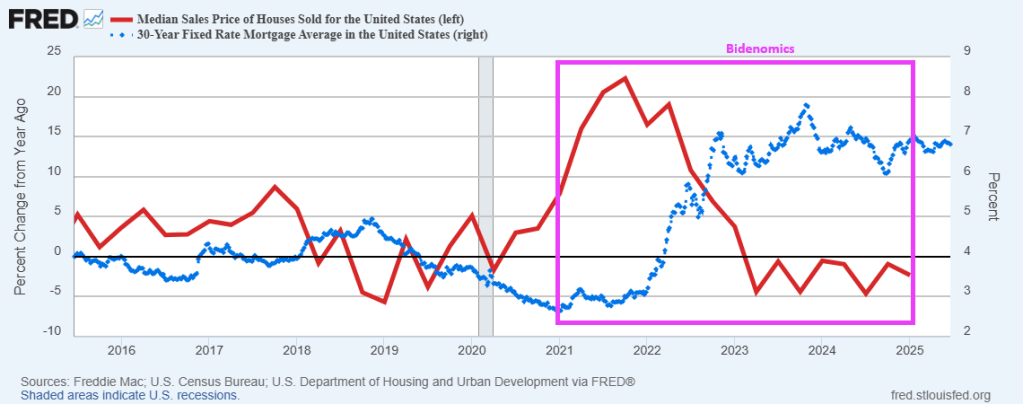 Mortgage rates grew under Biden from under 3% to nearly 8%, helping to choke off housing demand.