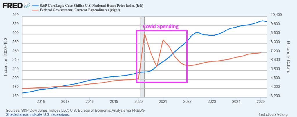 Here is a chart of the Case-Shiller national home price index post Covid outbreak and the hysterical overreaction by Congress and the Administration (including Anthony Fauci).