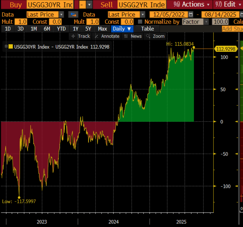 Another sign of economic health under Trump. The gap between 2-year and 30-year US yields has steepened to the widest in three years.