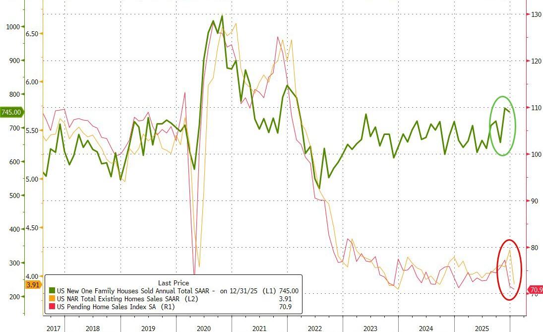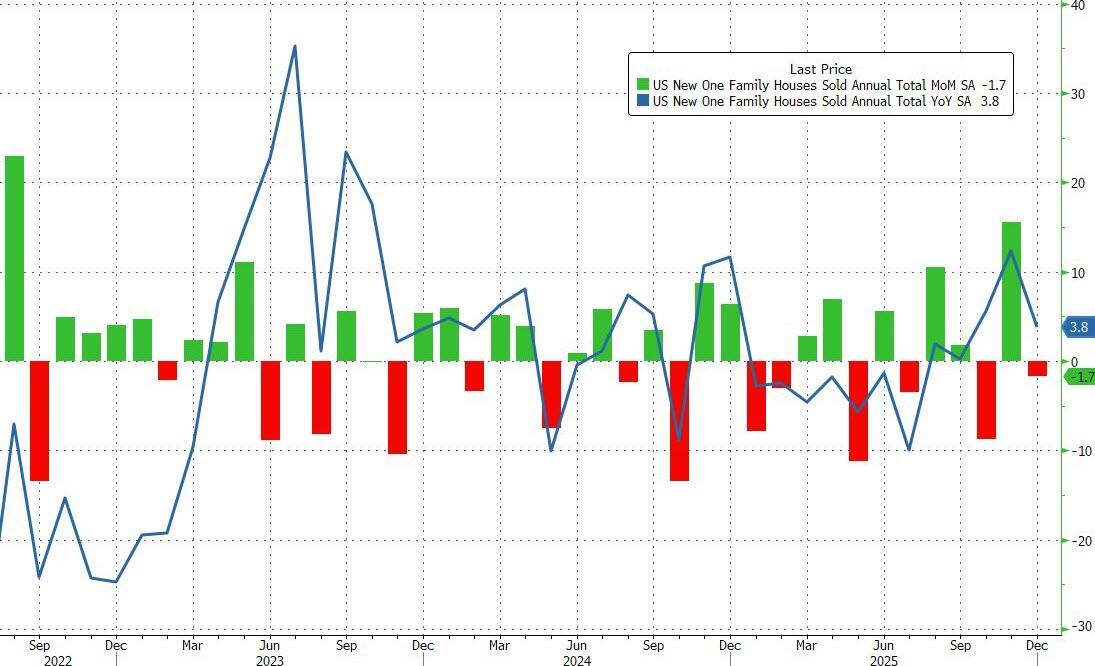 US New Home Sales dipped 1.7% MoM in December (after a 15.5% MoM surge in November)…