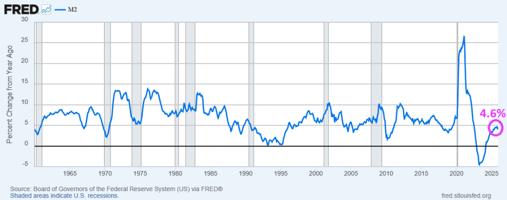 The Fed has been printing money (M2) like there is no tomorrow. With M2 growing at 4.6% YoY in December.