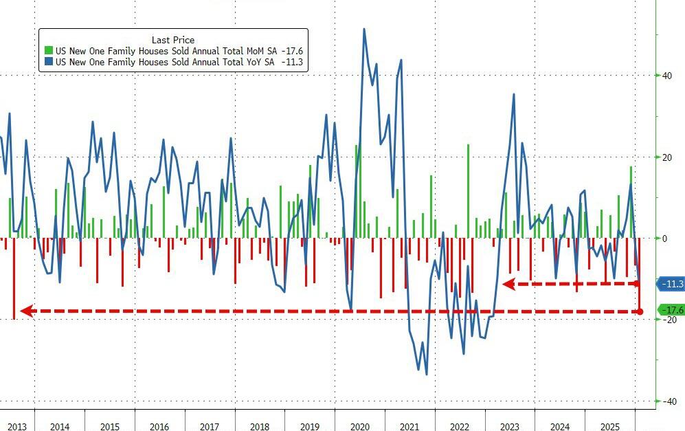 Despite falling mortgage rates, analysts expected December’s drop in new home sales to accelerate in January… and accelerate they did… crashing a stunning 17.6% MoM (-2.7% MoM exp) – the biggest MoM drop since July 2013.