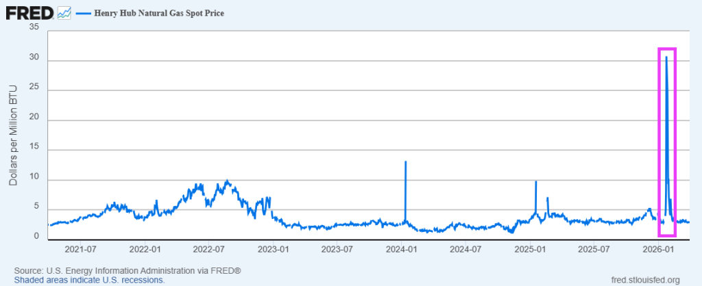 How about the impact of the Arctic cold blasts the northern states have received? You can see the spike in the Henry Hub Natural Gas Spot Price
