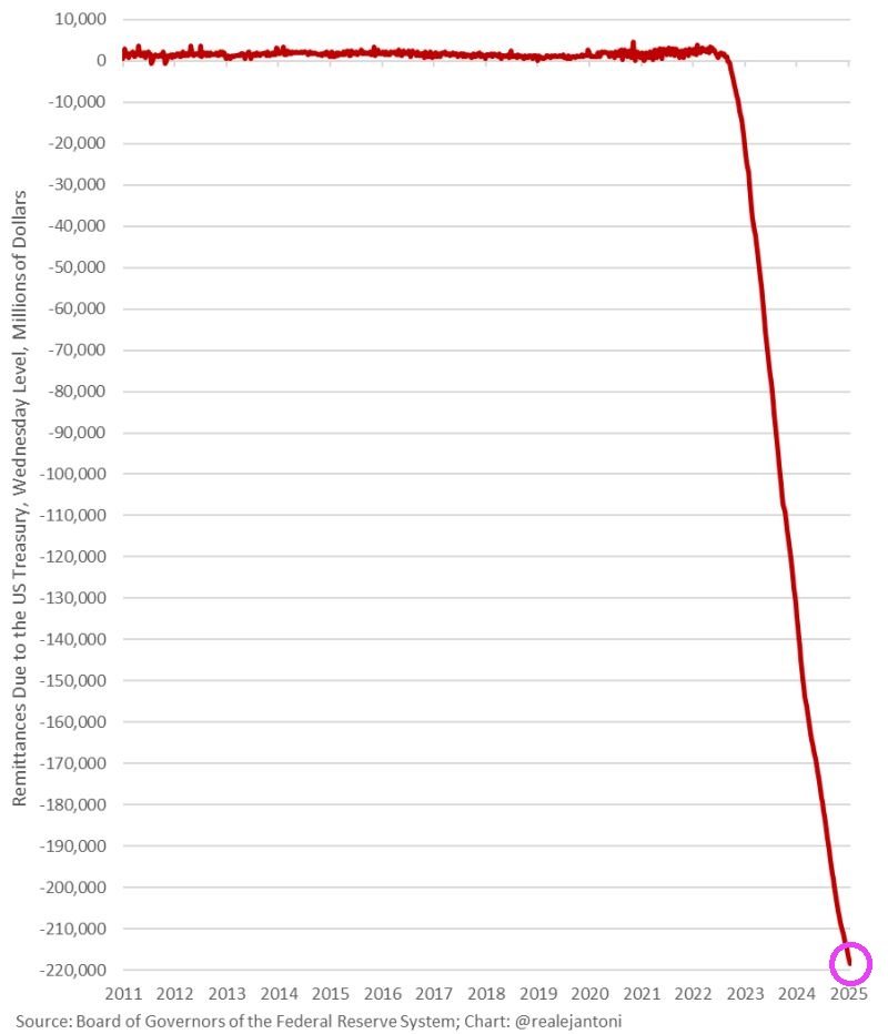 Trump is inheriting a Federal Reserve w/ not only unprecedented losses of $218 billion, but it’s still losing money; the Fed won’t send the Treasury a dime for the entirety of Trump’s term; that’s never happened since the inception of the Fed – another challenge for Trump.