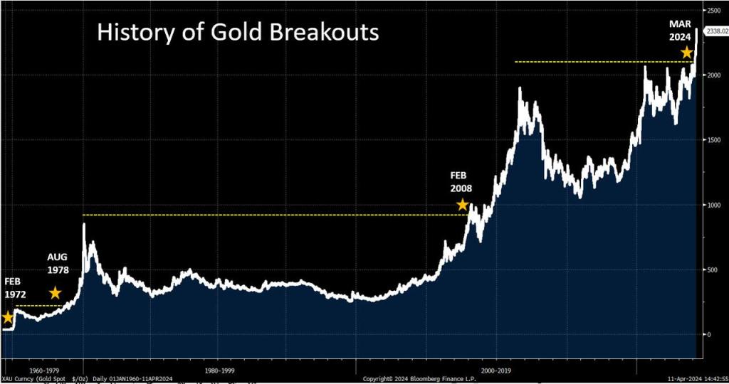 Returning to gold, we are seeing another gold breakout, like the breakout in 2008.