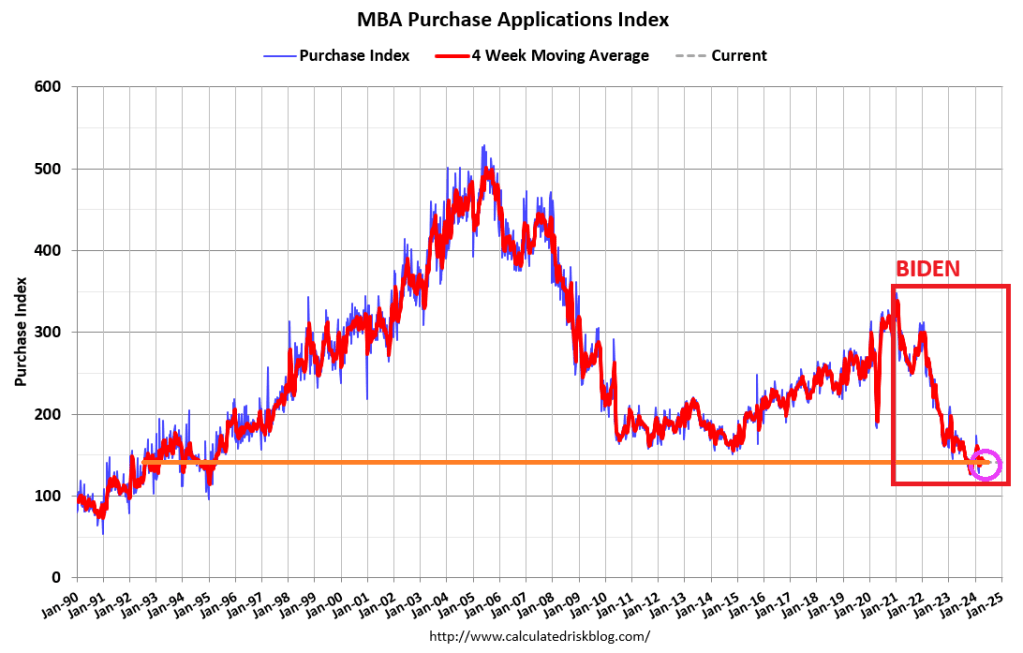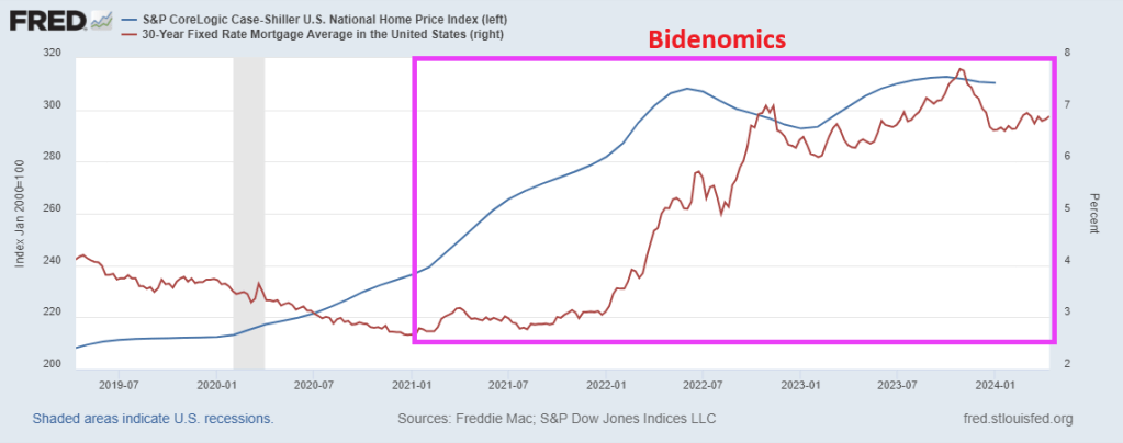One reason that America’s youth is disgusted with Bidenomics is skyrocketing prices, particulalry housing. (simply unaffordable). Thanks to awful economic policies, home prices are up 32.5% under Biden and 30-year mortgage rates are up a whopping 160%! Good luck buying a home with a part-time job.