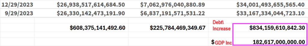 Graphically, we can Biden’s folly where Q4 public debt grew almost 5 times faster than real GDP.