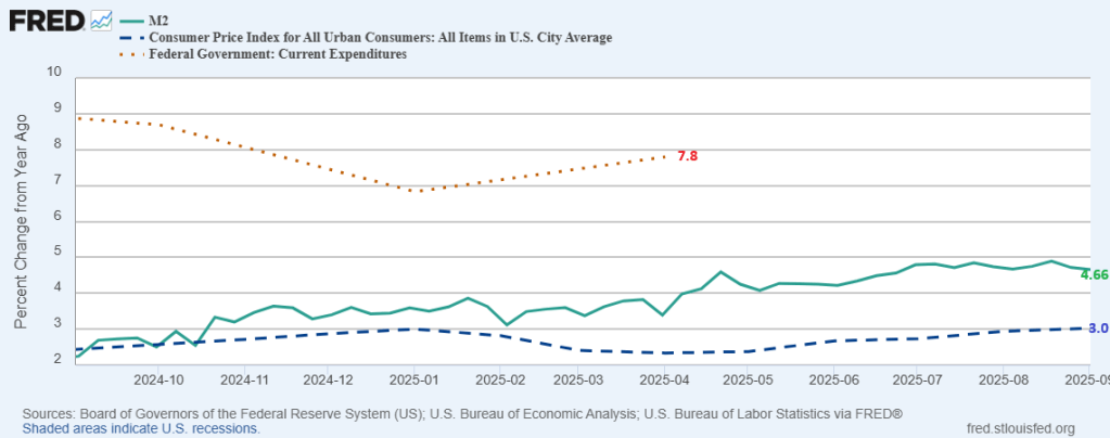 Of course, CPI data release has been delayed thanks to the US Federal government shutdown (aka, the Schumer Shutdown). But never fear, the Federal government is continuing to spending like the proverbial drunken sailors in port. The Federal debt just breached the $38 trillion mark.
