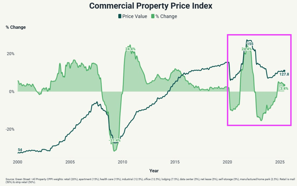 On the commercial real estate side, CRE prices remain below Covid 19 outbreak levels.