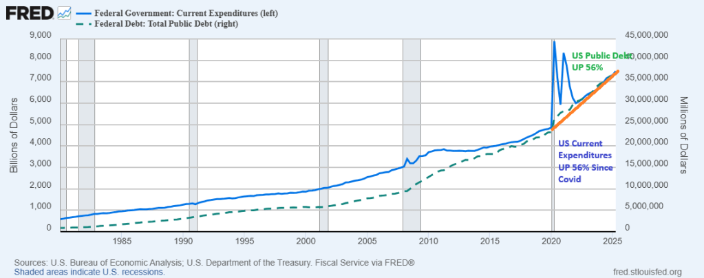 Can we ask the US House and Senate if they will ever return US Federal government spending to pre-Covid levels? Both US Federal government spending and public debt are up 56% since the Covid outbreak in 2020.