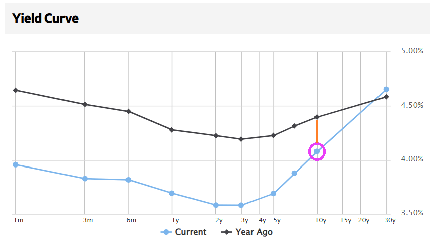 A new week starts! And the all-important 10-year Treasury yields checks in at 4.112%, down from 4.397% one year ago.