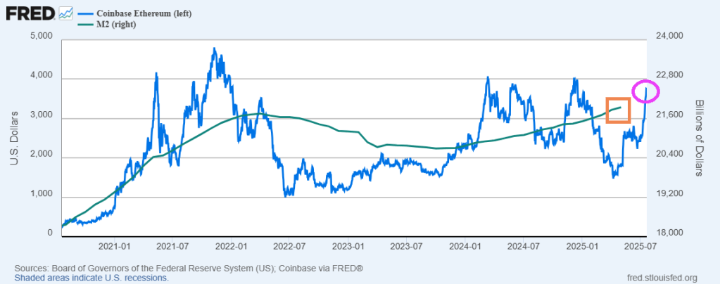 And the same is true for ethereum. It keeps growing as M2 Money keeps growing.