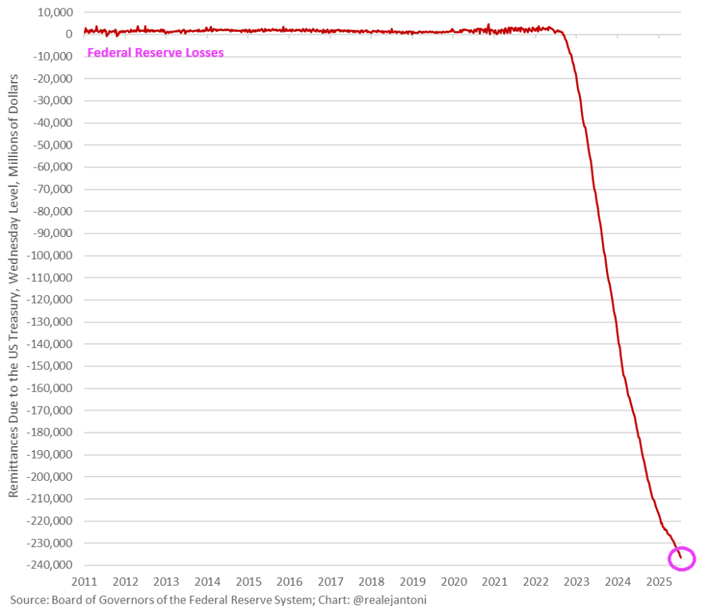 The Fed lost another $653 million last week, bringing total realized losses to more than $236 billion since Sep ’22.