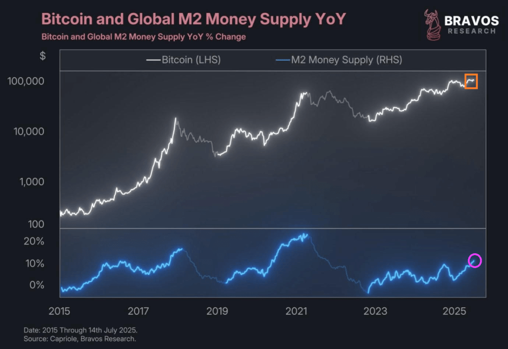 Bitcoin keeps on growing in price as global M2 Money supply keeps on growing.