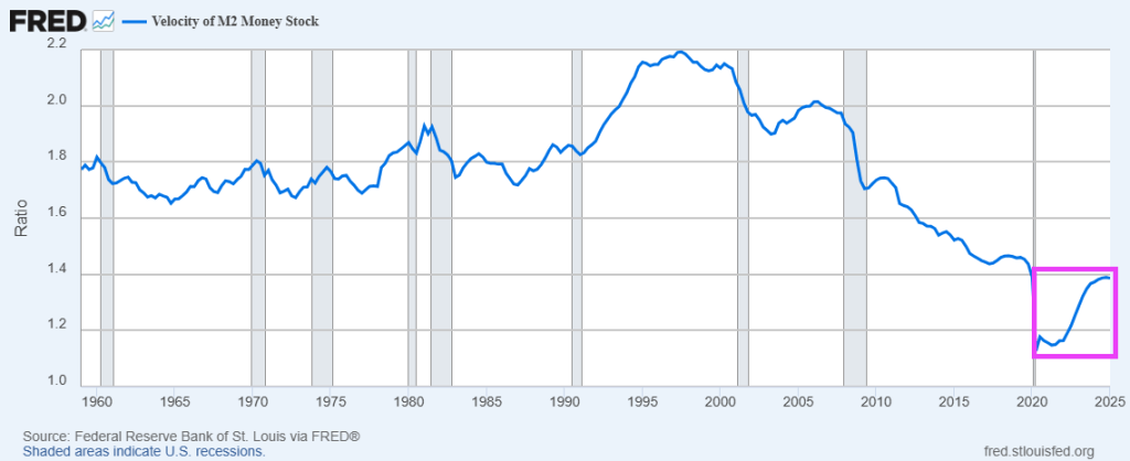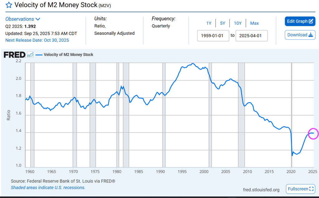 M2 money velocity (GDP/M2) is now at 1.392.