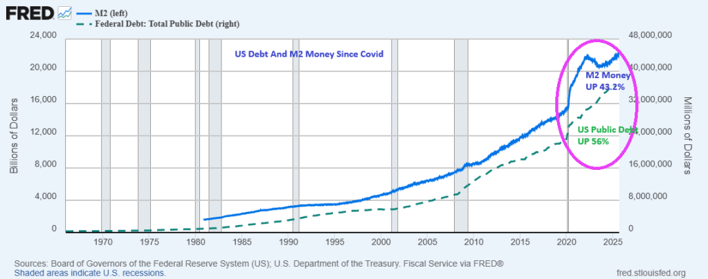 Federal borrowing has increased by 56% since Covid in 2020. And Fed M2 Money increased by 43.2% since Covid outbreak.