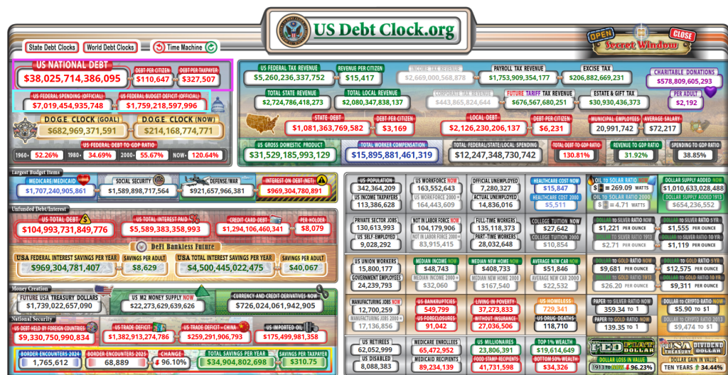 Of course, CPI data release has been delayed thanks to the US Federal government shutdown (aka, the Schumer Shutdown). But never fear, the Federal government is continuing to spending like the proverbial drunken sailors in port. The Federal debt just breached the $38 trillion mark.