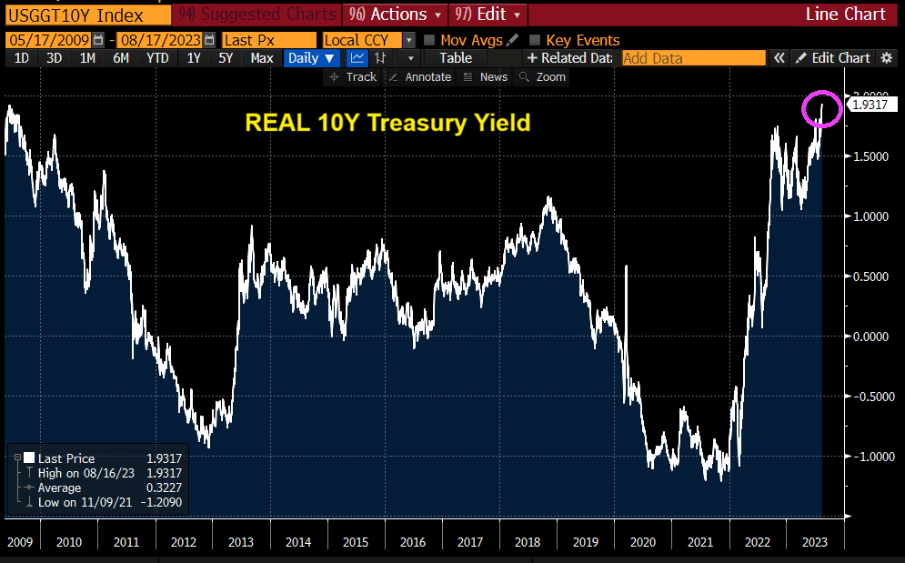 However, researchers at the New York Fed reckon that the real neutral rate will reach a staggering 250 basis points by the end of the year, one reason why Treasury long-dated yields have been sticky this late in the policy cycle.