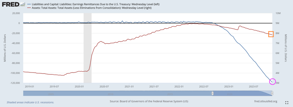 In addition, the Fed is spending another $500M in daily interest payments on its reserve policy, i.e. balances that banks are holding in their reserve accounts at the Fed.