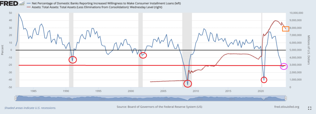 Banks’ willingness to lend has plummeted making credit availability increasingly tighter. Current levels have typically ended in recessions.This time is NOT different.