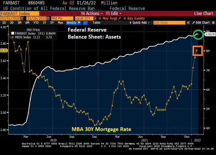 Now, The Fed is expected to raise their target rate 5 times or so over the next year AND slow down asset purchases. Mortgage rates are rising in anticipation of the Fed’s withdrawal of COVID related stimulus.
