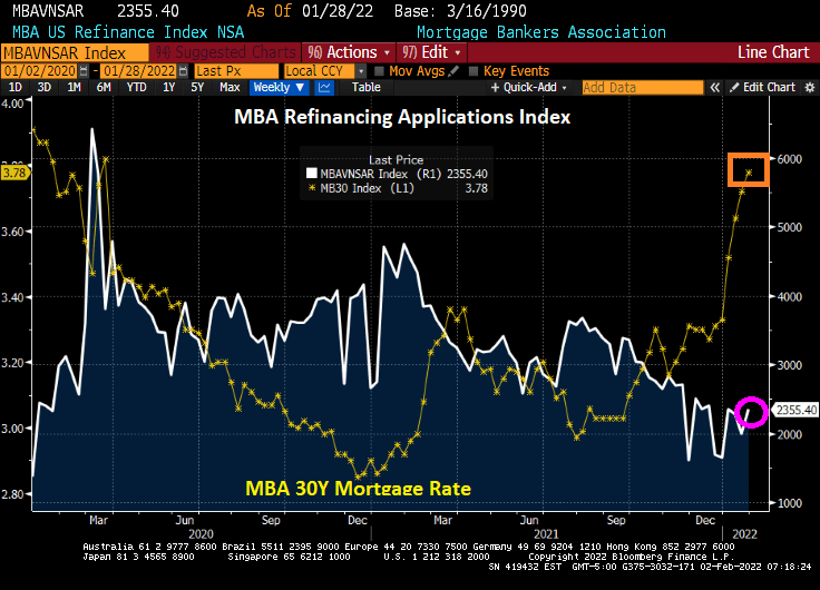 Refinancing applications were up 18.4% WoW as fear of Fed monetary tightening grips the mortgage market.