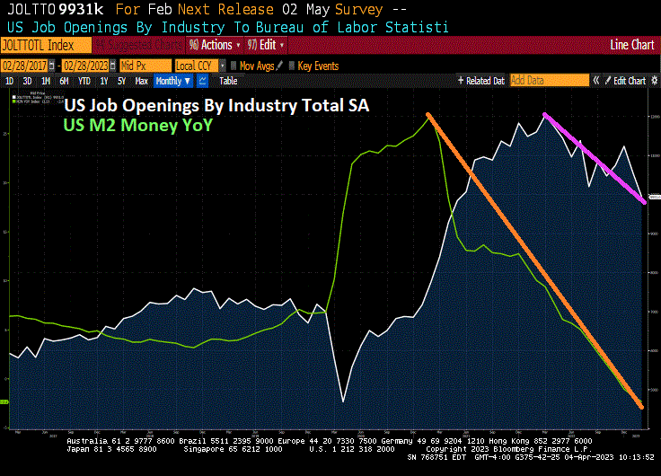 And here is the rub on wages. Average hourly earnings growth fell to 4.2% YoY, too bad inflation is 6% and expected to rise with the summer.
