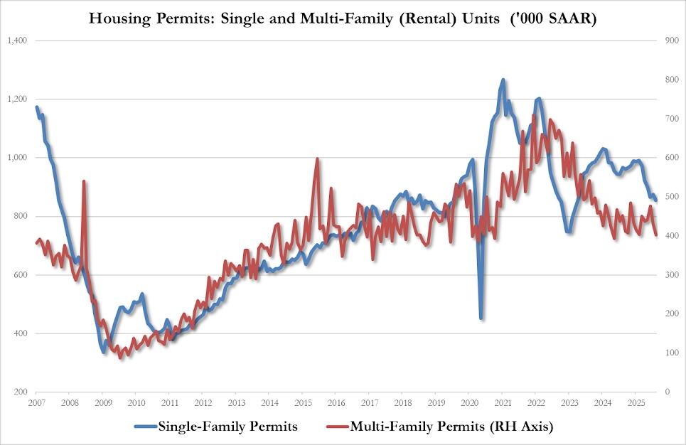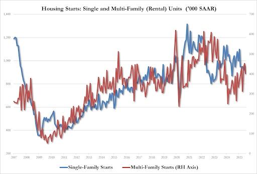 Multi-family 403K SAAR, down 6.7% from 432K in July and the lowest since May 2024
