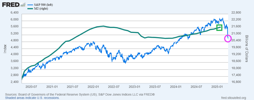 The Federal Reserve has created massive asset bubbles in financial markets. And the “tariff war” between the US and China. Since April 8, 2020, the S&P 500 index is up 81% while The Federal Reserve has printed a staggering amount of money as M2 Money is up 27.4% over the same period.