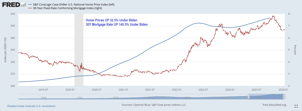 Housing is simply unaffordable under Bidenomics, a strange brew of big corporate green subsidies, political handouts (any wonder why Biden is forgiving student loans in an election year?) and bad Fed policy errors.