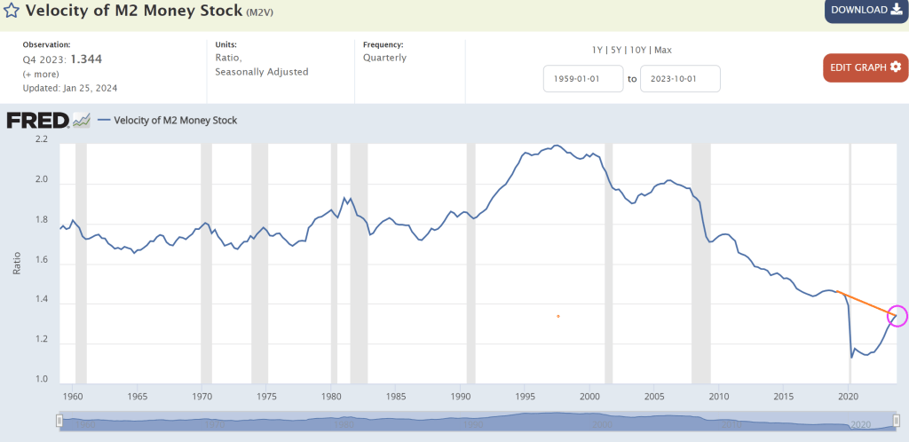 Perhaps a more interest velocity is DEBT velocity (GDP/DEBT). Under Biden’s Reign of Error, Federal debt has increased by $6,539,359 million while real GDP has increased by only $1,948.731 billion (or roughly $2 trillion in GDP growth after $6.54 trillion in debt). Or a DEBT velocity of 0.3. Yikes! No wonder China is bailing on US debt!
