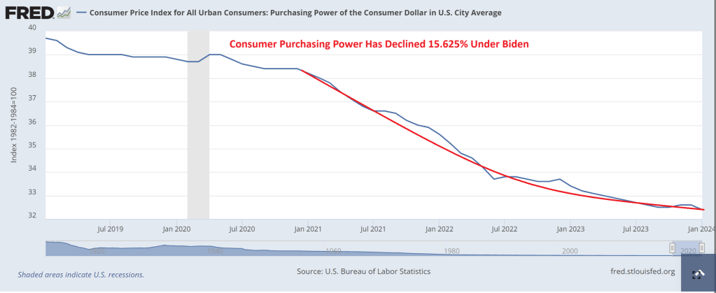 And under Biden, inflation has been so bad that consumer purchasing power is down 16%.