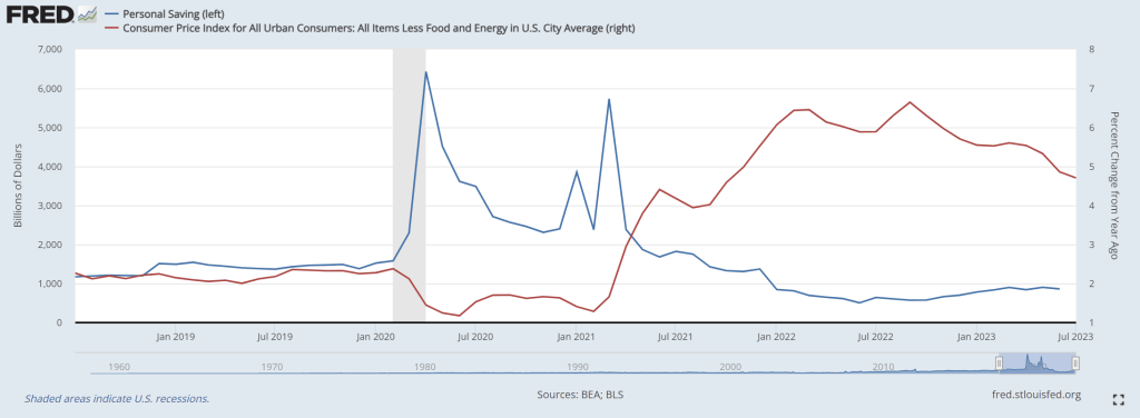 US personal savings are being exhausted as The Fed raises rates to fight inflation. I call this phenomenon “low riding” where consumers are being punished by The Federal Reserve and Biden Administration.