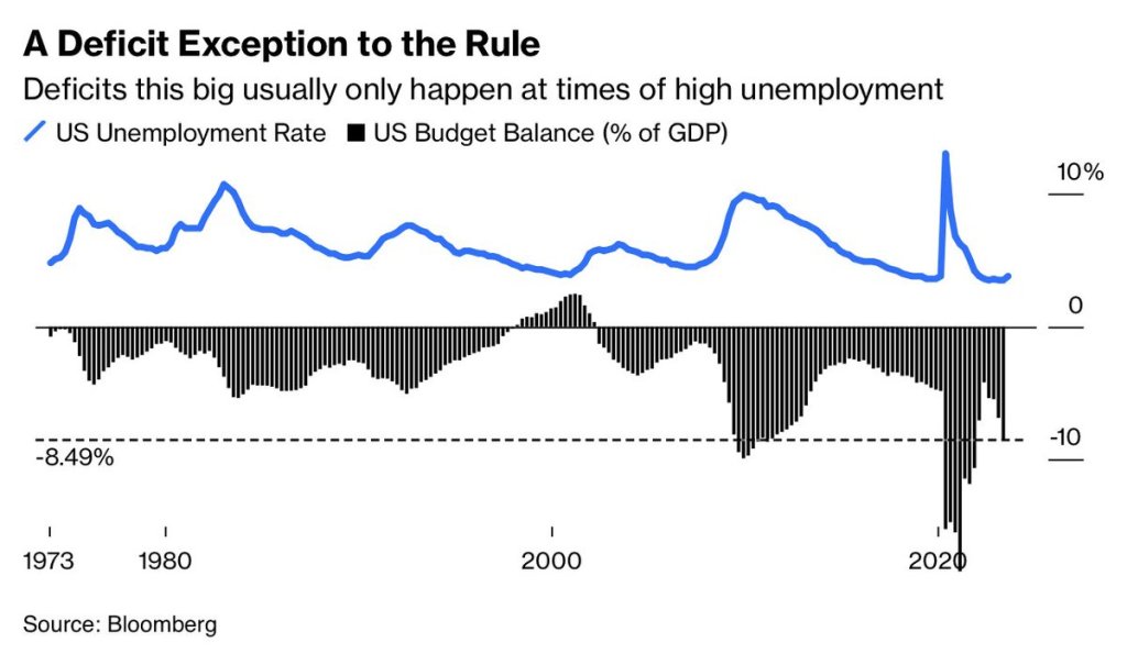 Deficits? Deficits (which Biden makes outlandish claims) are usually only this big at times of HIGH unemployment and recessions. So, are the staggering deficits under Biden a precursor to a hard landing (recession)? Don’t listen to what Biden or KJP say!!!