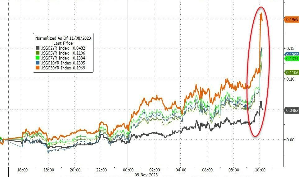 Treasury yields – as you would expect – exploded higher, with 30Y Yields back up to pre-payrolls levels…