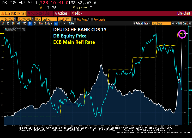 And the banking fiasco keeps rolling, particularly in Europe where Credit Suisse has been in the news for failing and now my former employer, Deutsche Bank (aka, The Teutonic Titanic).