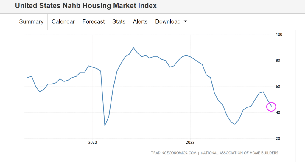 Builder confidence in the single-family housing market fell 5 points in September to 45 on the National Association of Home Builders/Wells Fargo Housing Market Index. The decrease follows a 6-point drop in August. Anything below 50 is considered negative.