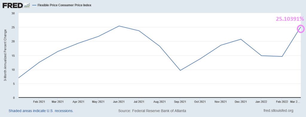 Actually, The Atlanta Fed’s flexible price inflation rate is 25%, up from 3.90% Pre-Joe.