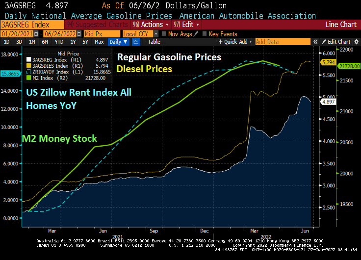 And a M2 Money Stock (green line) declined, US rents (blue line) declined as well.