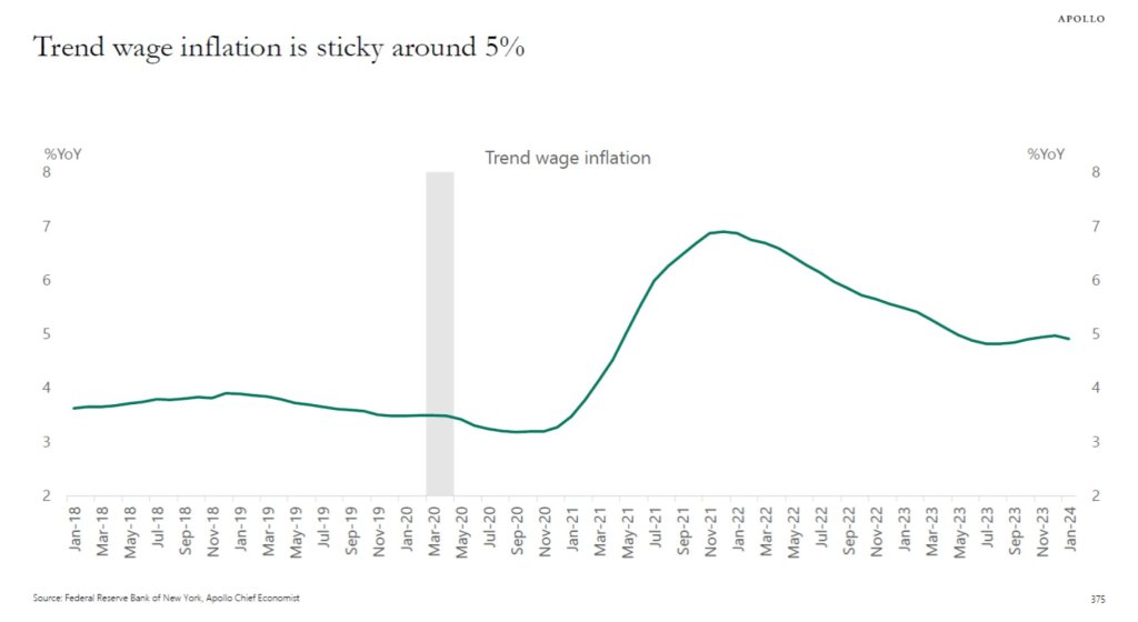 He then recaps last week’s main event, namely that after almost a decade, Japan finally exited negative interest rates and Yield Curve Control (YYC), primarily on the back of soaring (nominal, not real) wage gains: “Rengo, Japan’s largest trade union confederation, announced last Friday that its members have so far secured pay deals averaging 5.28%, far outpacing the 3.8% squeezed out a year ago — itself the highest gain in 30 years (see Bloomberg here and SG Economist Jin Kenzaki’s analysis of this data and the BoJ’s move here).“