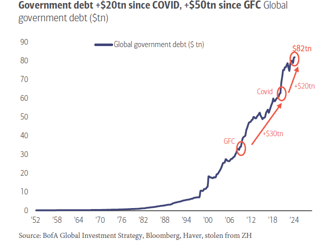 Which brings up the $64 trillion question: “Do the Fed and ECB really want inflation to return to pre-pandemic inflation lows?” Well, with global debt now about 7x higher in just the 21st century, and fast approaching $100 trillion, meaning it will all have to be inflated away somehow…
