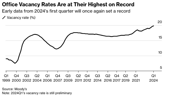 The high office vacancy rate continues to be terrible news for landlords and developers eager to fill their buildings, and the Fed’s hiking cycle has made refinancing very challenging.