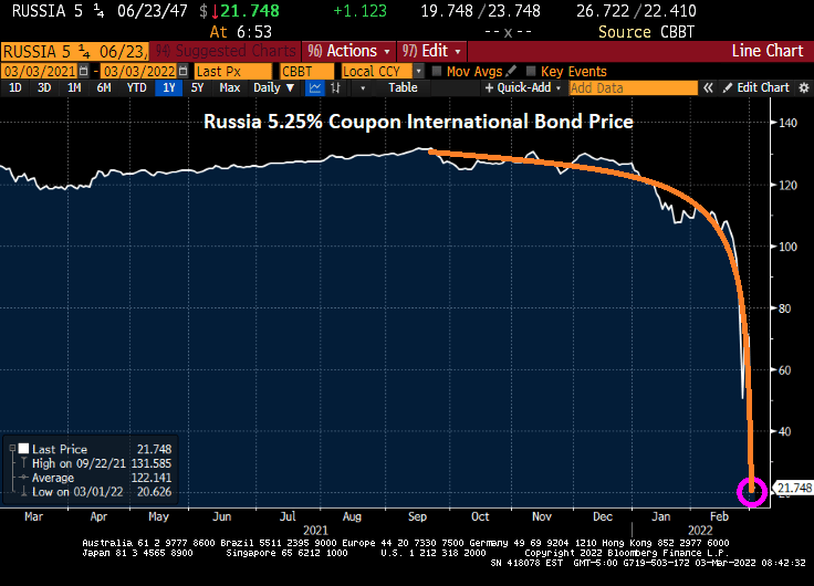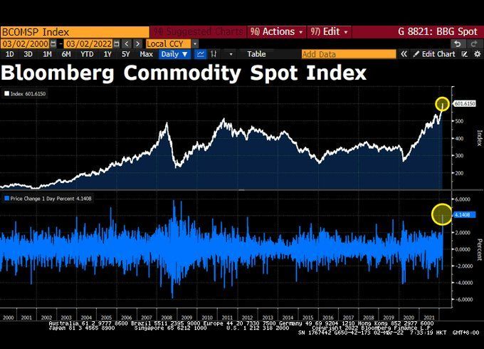 WTI Crude Oil spot price was up 91% from the beginning of 2021 to the Russian invasion of Ukraine. Now it is up 142% thanks to the invasion of Ukraine.