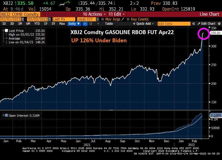Gold is now at it highest level since before Biden was sworn-in as President as WTI Crude Oil soars.