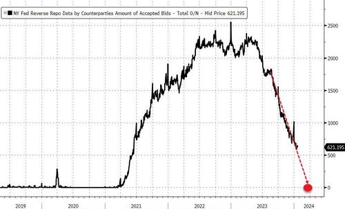 And finally as a derivative of the above mention, another hypothetical Treasury QRA where we’d see “Bill issuance remaining high, yet with Coupon increases not as large as most anticipate” would then mechnically see MMF’s continuing pulling from RRP to buy Bills, which will further accelerate the RRP drain…and as outlined in recent weeks, “low” RRP levels will act as “a” key input to Fed reaction function on determining LCLoR……which will ultimately mean 3) a pulling-forward on the market’s expected timing on the “end of QT”