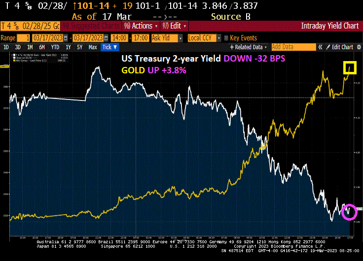 At the same time, gold 3.8% and silver rose 4.7% on banking fears.