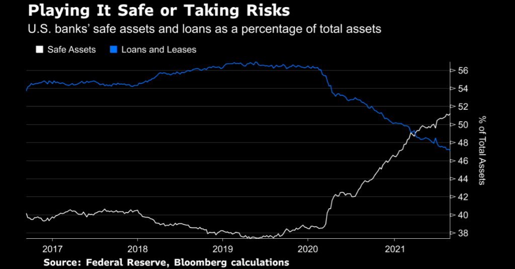 The share of safe assets — virtually riskless investments such as cash, Treasuries, and securities effectively guaranteed by the U.S. government — increased to 51.2% of total assets from 51.0%