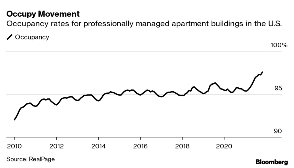 Kastle’s “Back to work barometer” is showing that the 10 city average occupancy rate in the US is now only 42.8% as remote working has caught on. And the fear of yet another Covid mutation is keeping office occupancy below 50%.